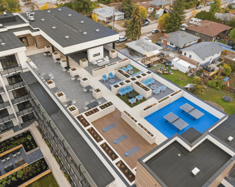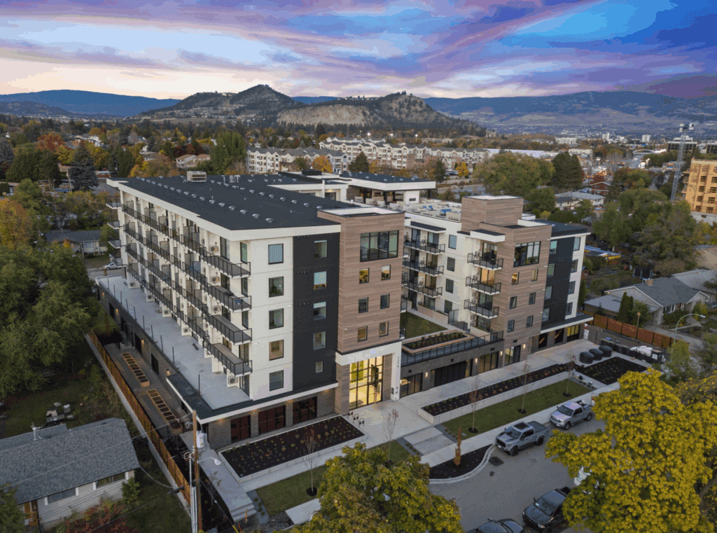 Now welcoming new homeowners, the building offers 207 thoughtfully designed smart suites complemented by secure underground parking, shared workspaces, a fully equipped gym, and nearly 8,000 sq. ft. of rooftop garden and amenity space. These features create a vibrant, connected community where residents can live, work, and relax in the heart of one of Kelowna’s fastest-growing neighborhoods.